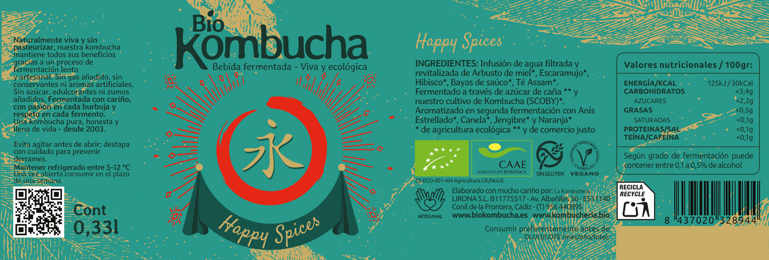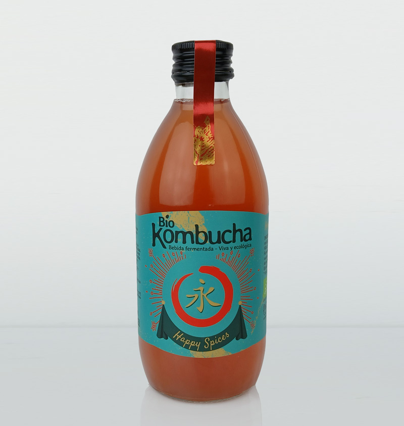 La Kombucha Happy Spices, como siempre ecológica, es una edición especial y limitada. Pasa una segunda fermentación con especies calurosas que te dejan con un aroma navideño.