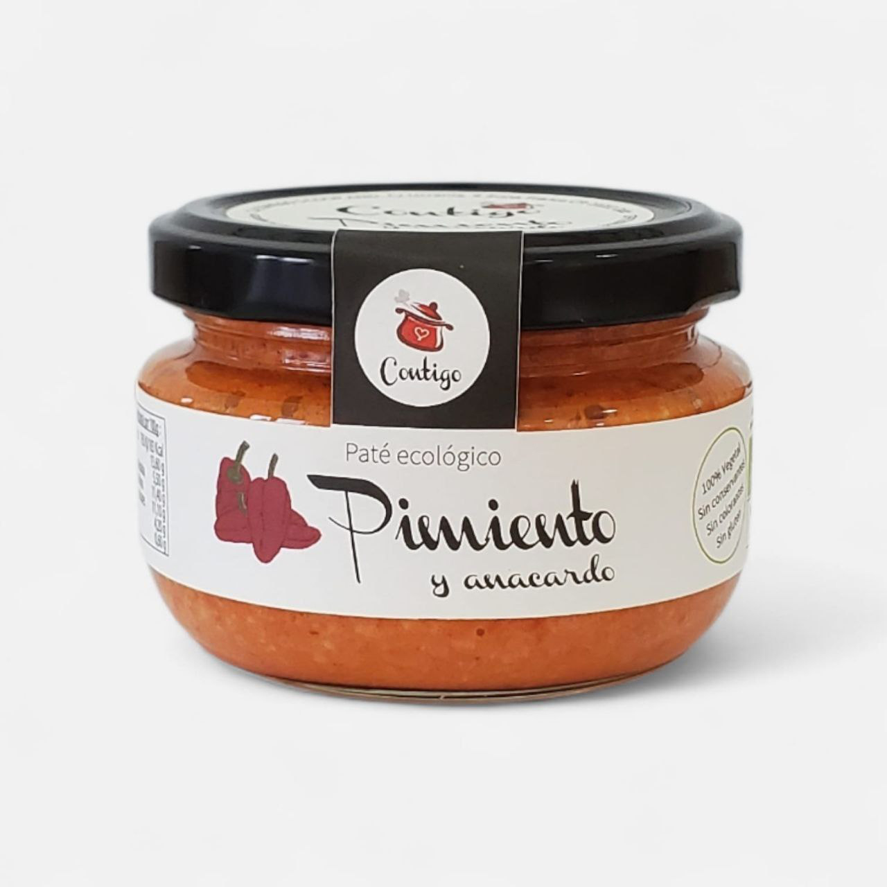 El paté de pimiento con anacardos combina la dulzura natural del pimiento asado con la cremosidad suave de los anacardos, dando como resultado una textura untuosa y un sabor equilibrado, intenso y delicado a la vez.